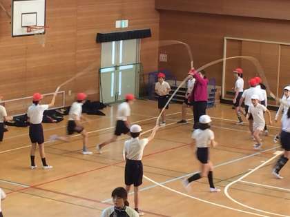 今日は、低・中・高学年に分かれて、1時間ずつ大縄跳びを教えていただきました。