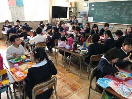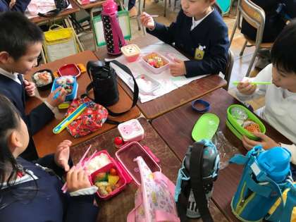 見学の時間の都合で 学校でお弁当を食べてから出かけました。