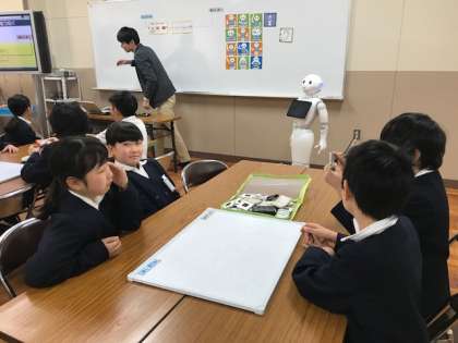 子どもたちは、ペッパー君が答えてくれる言葉を