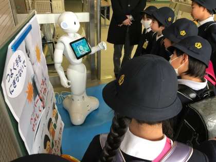 昨日から ペッパー君が古市小学校へ来ています。