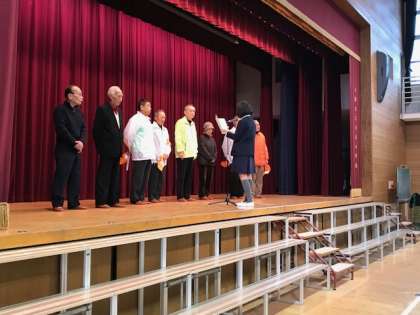 いつも温かく登下校を見守ってくださっている見守り隊の方の中から代表の方にお越しいただき 感謝状をわたし ありがとうの気持ちを伝えました。