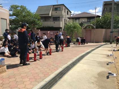 6年生 水消火器体験