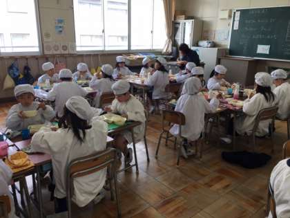 今日の献立は、豚肉のしょうが焼き・みそ汁・じゃこピーマン・米飯・牛乳でした。『みそ汁』は、うすあげ・キャベツ・にんじん・えのきたけ・わかめ・青ねぎを使用し、具だくさんのみそ汁でした。