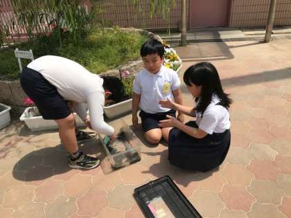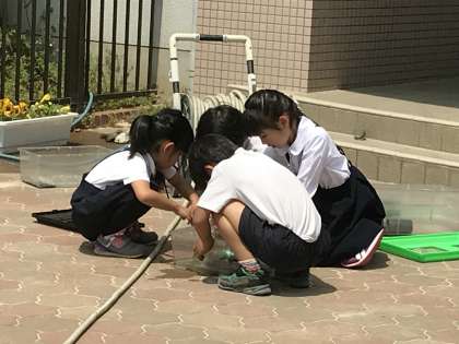 2年生 ざりがにの水かえ