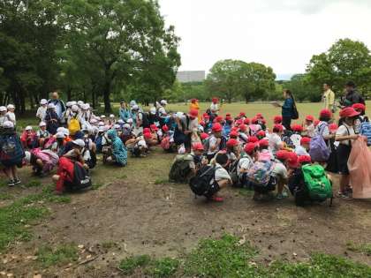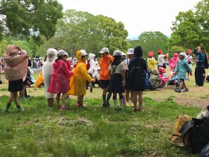 急な雨が対策として お弁当を食べる場所を確保し 昼食タイムを少し早くしました。