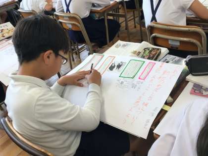 めあてについて一人調べをして 絵や図や言葉で表しながら考えを読み取っています。