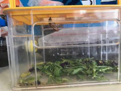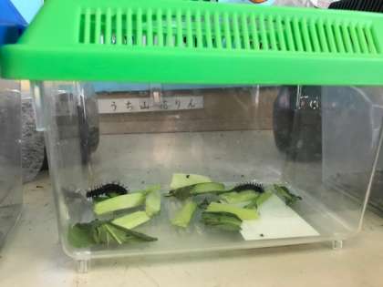 ツマグロヒョウモンの幼虫などを育てています。さなぎになった幼虫を家から持ってきた人もいました。