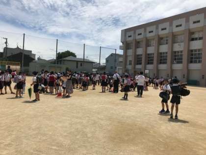 運動場に 地区ごとに集合してる順番に下校します。