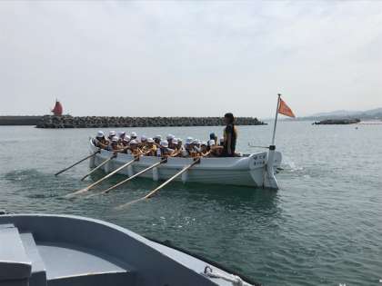 協力して 漕ぎ出しました。