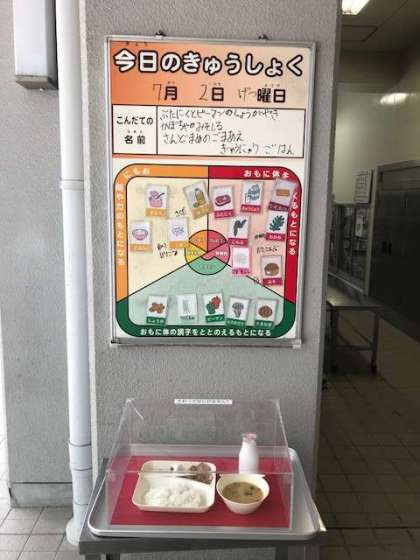 給食室前の献立展示