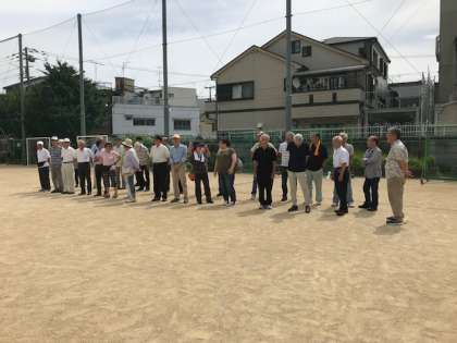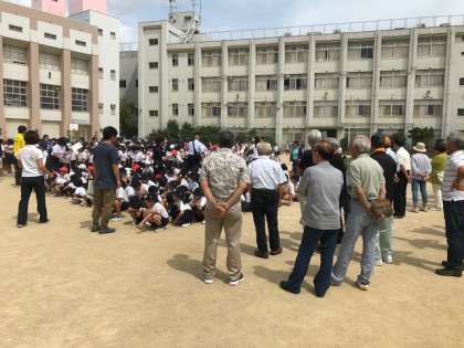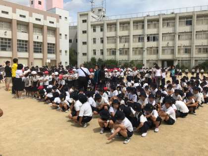 子どもたちが運動場に避難してきました。