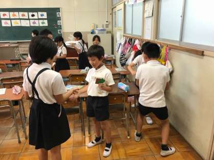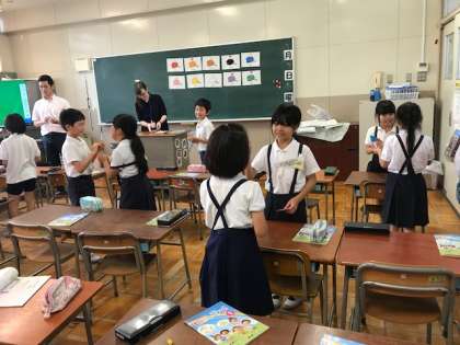 次にじゃんけんをして カラーカードを集めるゲームをしました。英語を使ってしました。