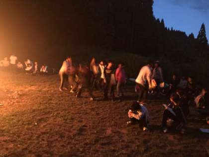 ドレミファソラシドでチームを作り ポーズを決めて踊りながら歌いました。