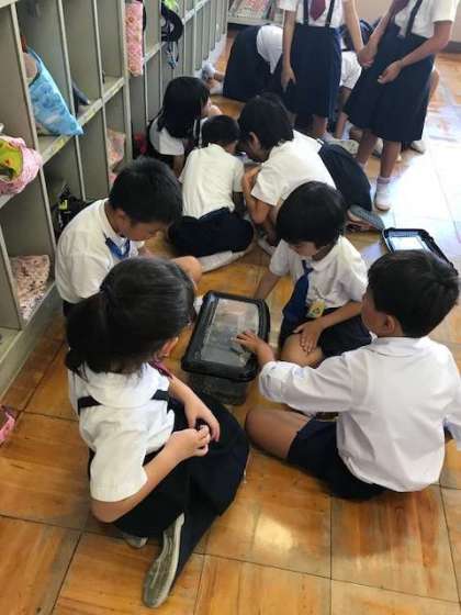 ザリガニの世話もしました。