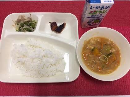 今日の献立は、『たこのやわらか煮・みそ汁・野菜いため・米飯・牛乳』でした。