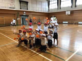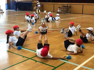 運動場が雨で使えないので 講堂で 初めから終わりまでを 通して練習しました。