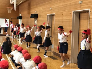 このダンスは 応援団が初めて見せてくれました。手拍子と「やってみよう」という声で 全員参加をして 盛り上げました。