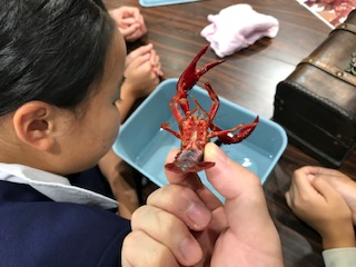 ザリガニのオスとメスを見分けました。