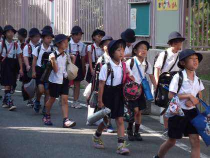 帽子もかぶって しっかり登校!