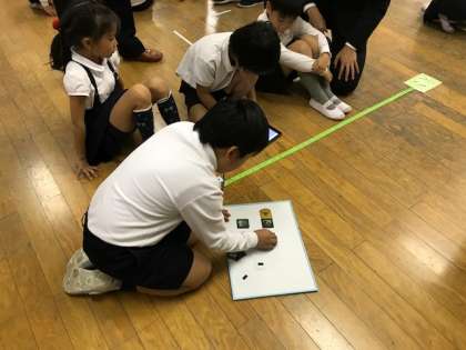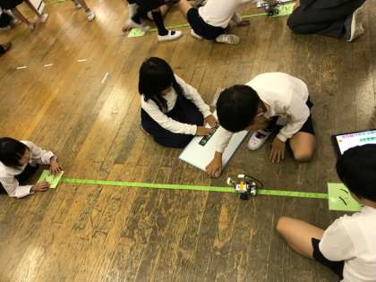 子どもたちは相談しながらプログラムを