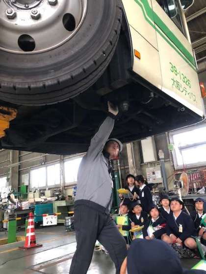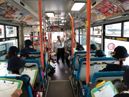 車いすの設置方法などのバスの仕組みについて教えてもらいました。