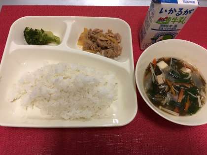 今日の献立は、『豚肉のコチジャンいため・もずくスープ・ブロッコリーのナムル風あえもの・米飯・牛乳』でした。