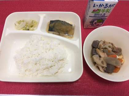 今日の献立は、『さごしのおろしじょうゆかけ・五目豆・はくさいの甘酢あえ・米飯・牛乳』でした。
