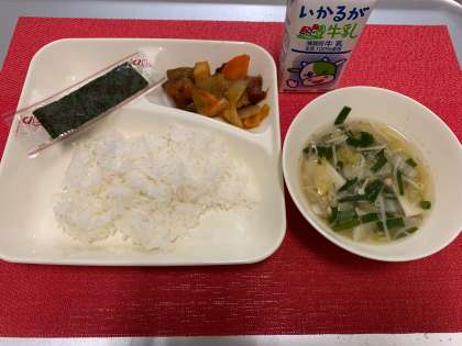 今日の献立は、『酢豚・ワンタンの皮のスープ・焼きのり・米飯・牛乳』でした。