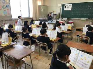 元気に歌ったり鍵盤ハーモニカをふいたりしています。