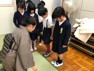 初めに正しい靴の脱ぎ方と揃え方を教えていただきました。