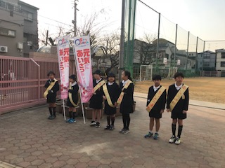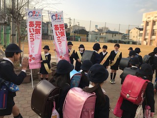 あいさつ運動には 4年生4名と6年生1名の5名が自主的に参加してくれました。