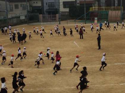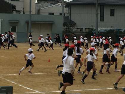 2時間目の後の休み時間に、3つの学年が運動場に出て約10分間、走ります。