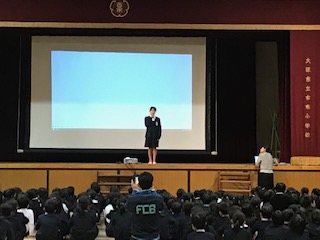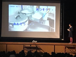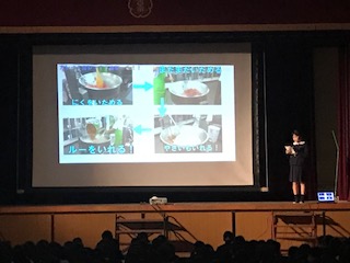 風邪で休みの人が多かったので 延期していた給食集会を 今日実施しました。