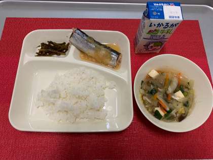 今日の献立は、『さんまのみぞれかけ・すまし汁・茎わかめのつくだ煮・米飯・牛乳』でした。