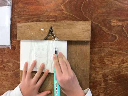 子どもたちはうまく彫っています。