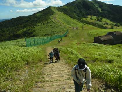 班ごとに登山を行いました。今回は宿のスタッフさんから気象状況についての助言もあり、大事をとって、目指す山頂を鉢伏山から高丸山に変更して行いました。グループごとに、声を掛け合って登ることができていました。