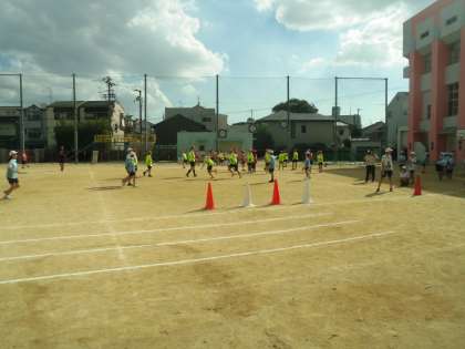 6年生が運動会に向けて、リレー走の練習に取り組んでいました。団体演技の練習に、どうしても時間を取られてしまいますが、リレー走は高学年児童の見せ場の一つだと思っています。そんな練習を、今市中学から陸上部顧問の体育教諭に指導いただけることは、本当にありがたいことだと思っています。
