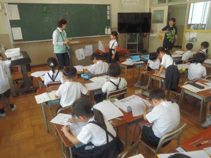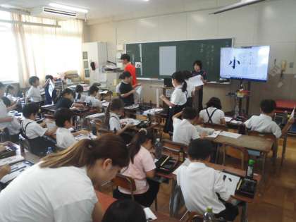 1年生が書写の時間に、鉛筆を使ってがんばって字を書いていました。4月から比べると、本当にていねいに力強くかける児童が増えてきました。そのころ3年生の教室では、理科の専科の時間を使って、複数の教員が書写の毛筆の指導を行っていました。準備や片付けを含めると大変な活動なので、複数の教員で指導にあたることができるのは有意義です。校内を巡視しながら、子どもたちの成長の過程を実感できることは、とてもうれしい瞬間でした。