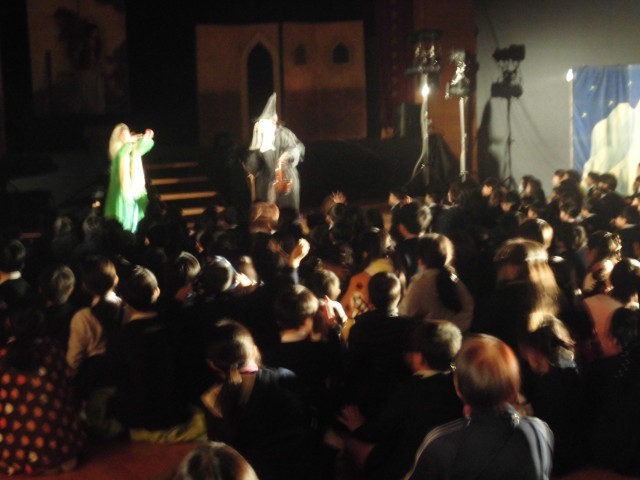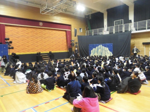 本日は芸術鑑賞会として、東京の劇団歌舞人(かぶと)さんによるミュージカル「アラジンと魔法のランプ」を鑑賞しました。華やかなイルミネーションで会場を包みながら、歌と踊りでストーリーを伝えていただきました。現代の子どもに伝わりやすく工夫されており、子どもたちは大喜びでミュージカルの世界に引き込まれているようでした。