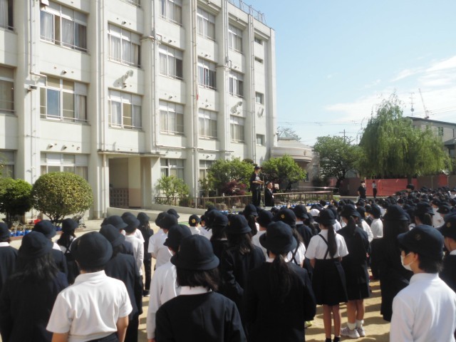 本日、1年生を交えて、初めての全校朝会を運動場で行いました。全学年の児童が一堂に会する大切さについては、コロナ架においてできなかった時期に痛感していました。ここにいるみんなが仲間であり、お手本であり、集団育成の観点からも大切な存在です。2週に1度ではありますが、よい機会になるよう実施していきたいと思います。