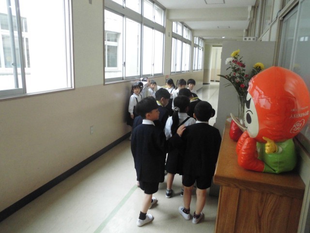 今日の3時間目に、2年生が1年生を連れて「学校たんけん」を行いました。行く先々で、その場所について説明をしたり、シールを貼ったりするだけでなく、グループで安全に歩くことができるよう気を配りながら歩いていました。その姿に、1年間の成長を感じたのは我々だけでなく、1年生にとっても身近な頼れるお兄さん・お姉さんだったことでしょう。頼もしいですね。