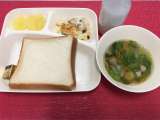 今日の献立は、マカロニグラタン・レタスのスープ・りんご(缶)・食パン・バター(...