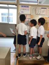 校下指導委員の皆様と見守り隊の皆様もご参加くださいました。 1学期の誘い合い登校...