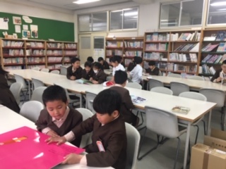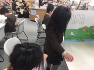 本好きの子ども達がたくさん集まってきました。みんなで人気の本を読んだり、大型絵本の読み聞かせをしたりと様々です。貸出・返却は、来週から行います。新しい本も入っています。楽しみにしておいてくださいね。