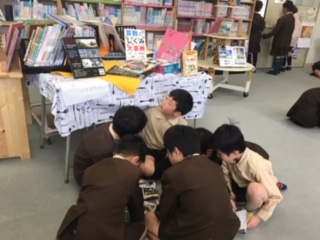 一日中雨が降っていたので、15分休みと昼休みに図書館を開放しました。