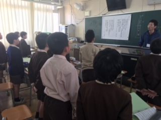 教科担当制で音楽、図工、英語を行なっています。ちょっと緊張気味のところもありますが、たくさんの先生に教わるのは良いことです。美しい声の出し方を練習した後、「ビリーブ」を歌いました。きれいな声がよく出るようになりました。また、曲のイメージをつかみ、どこを強くしたり弱く歌ったりしたら良いかも考えました。