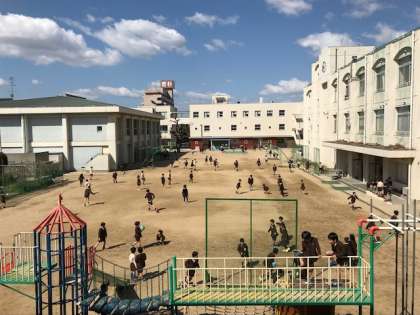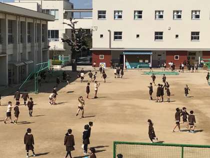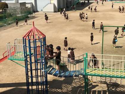 休み時間や昼休みには、たくさんの児童が運動場に出て、ボールや長縄、遊具を使って楽しそうに体を動かしています。その姿は、どの児童もとてもいきいきしています。