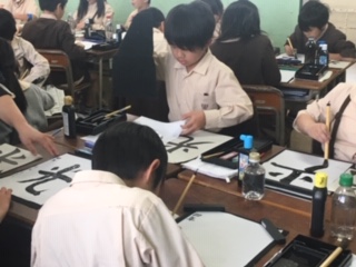手本を見ないで最初に書いた字と、練習した字を比べると、みんな見違えるほど上手くなっていました!