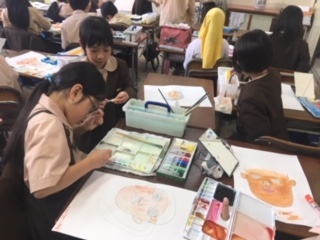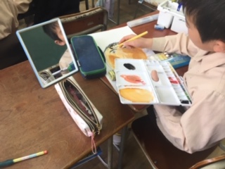 鏡を見ながら自分の顔を描きました。似ているかな?