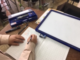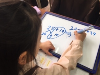 25+14の計算の仕方を考えました。自分の考えをわかりやすくノートに書いたり、発表ボードにまとめたりしてみんなにわかるように説明をしました。